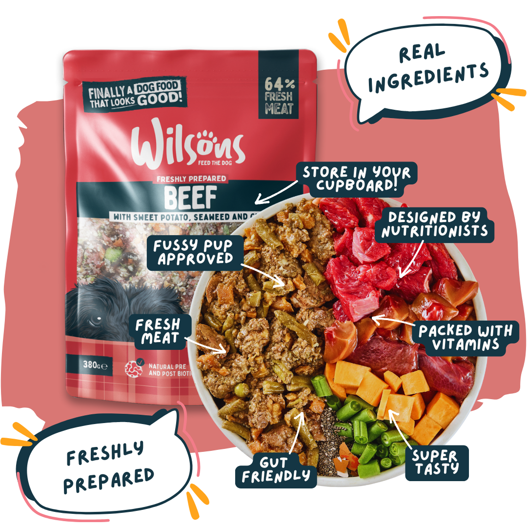 Created by expert nutritionists, our cupboard-ready fresh meals are packed with all the natural, fresh ingredients your dog needs, every single day.
