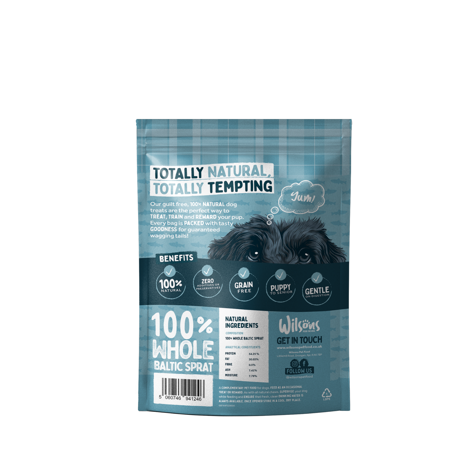 Our delicious whole Baltic Sprats are 100% natural, grain and gluten free and gentle on digestion. As if that wasn't enough to reel you in..they're also naturally rich in Omega 3 and 6 fatty acids. The ultimate hardworking snacks that promote a healthy immune system, healthy skin and coat as well as supporting your dogs joint health.