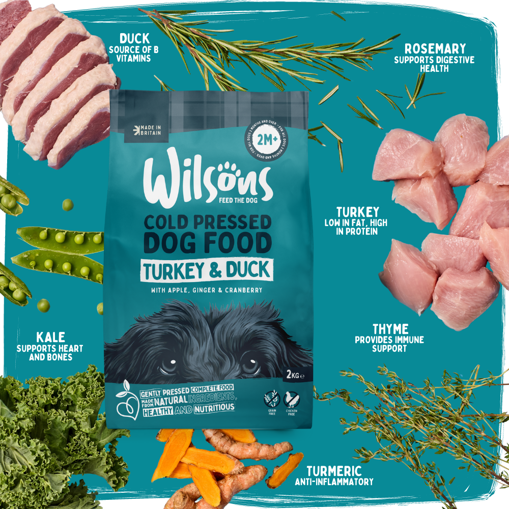 This is award winning Wilsons Cold Pressed. A nutritionally complete dry food, handmade in Scotland using only the very best natural ingredients. Our huge range ensures fussy pup requirements are met, including grain free and chicken free options.