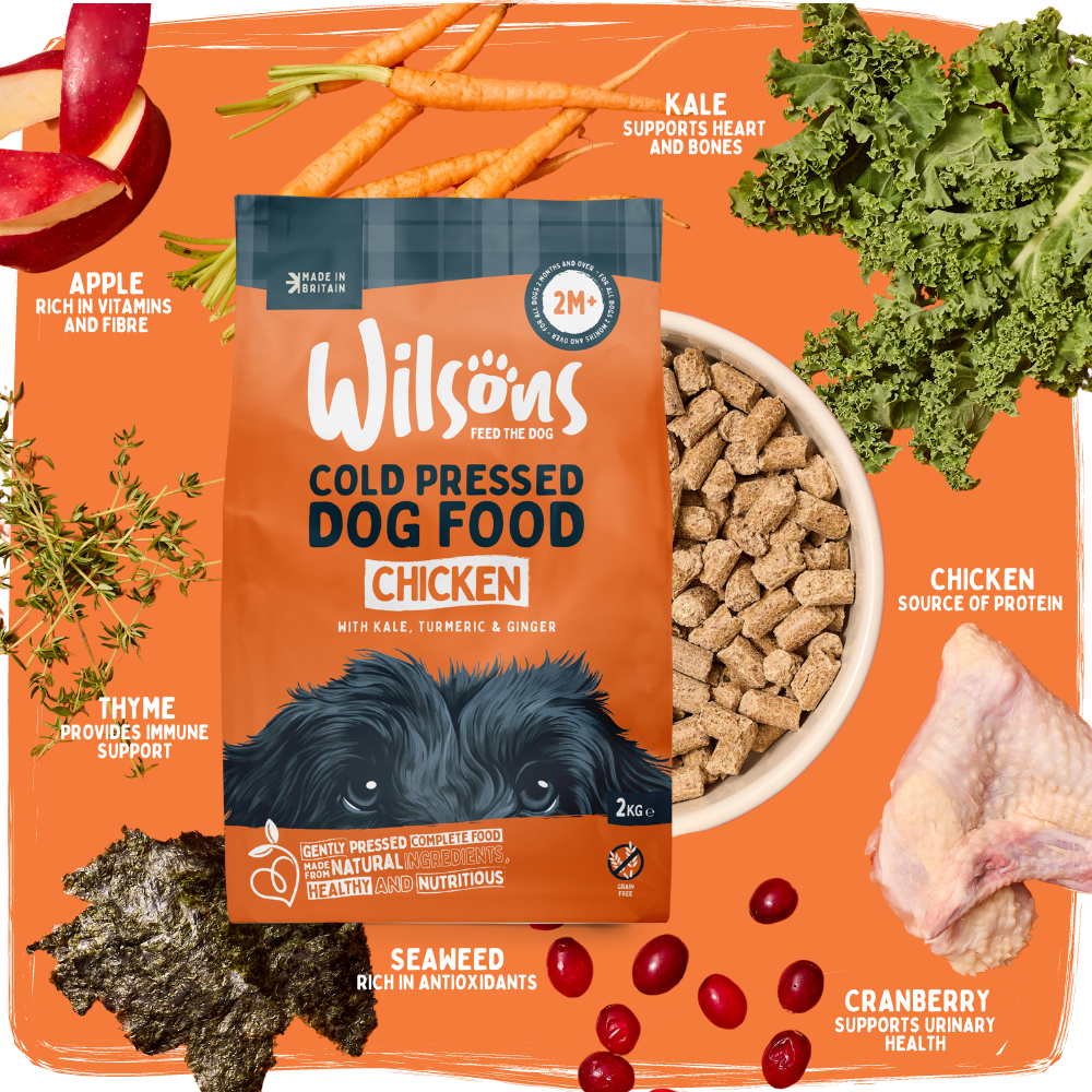 This is award winning Wilsons Cold Pressed. A nutritionally complete dry food, handmade in Scotland using only the very best natural ingredients. Our huge range ensures fussy pup requirements are met, including grain free and chicken free options.
