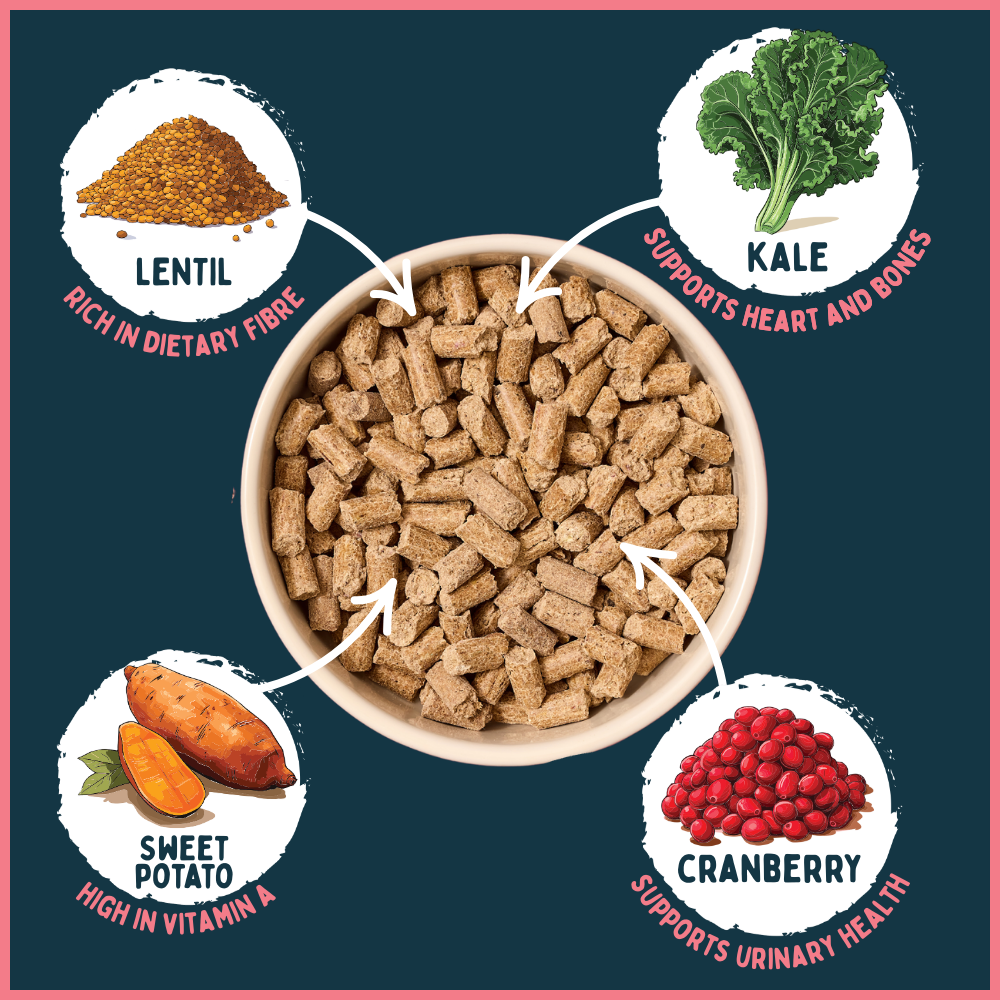 What you're left with is small but mighty, nutrient dense pellets of dry food that contain everything dogs needs to support their health and wellbeing. What's more, it's easier to digest and more nutritious than kibble. It really is dry dog food without compromise.