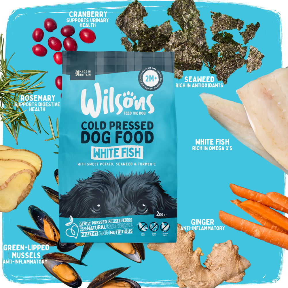 This is award winning Wilsons Cold Pressed. A nutritionally complete dry food, handmade in Scotland using only the very best natural ingredients. Our huge range ensures fussy pup requirements are met, including grain free and chicken free options.